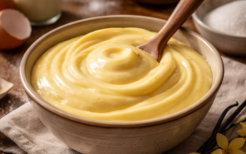 Заварний крем — один із найуніверсальніших кремів у домашній кондитерській справі. Він однаково добре працює і як начинка, і як прошарок, і як самостійний десерт.