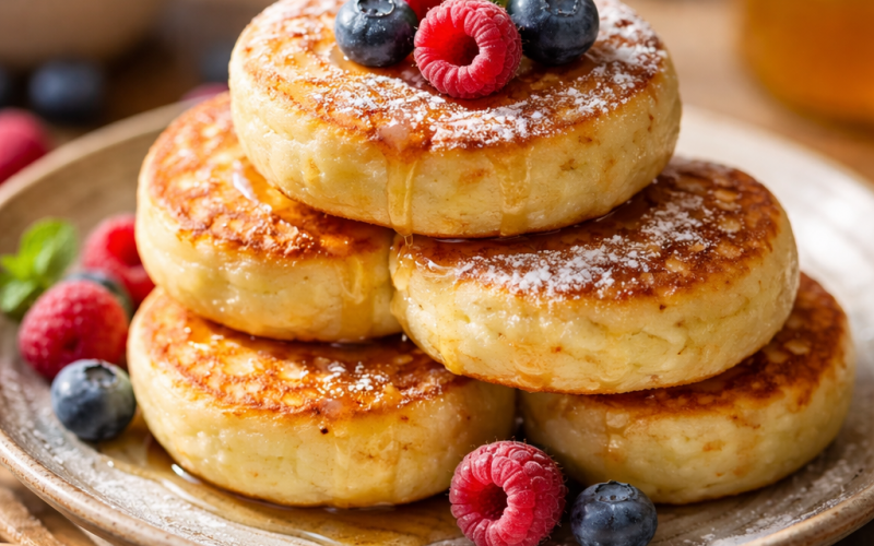 Готові сирники зберігаються в холодильнику до двох діб. Розігрівати краще на сухій сковорідці під кришкою — так вони не стають гумовими і зберігають текстуру. Мікрохвильовка теж підходить, але дає м’якший результат без скоринки.