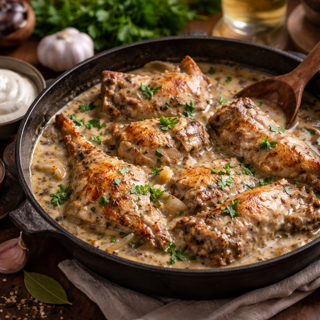 Все перемішати — соус готовий. Для гострішого варіанту додають трохи гострого перцю або аджику. Якщо хочете щось ближче до турецького стилю — замініть йогурт на суміш майонезу і кетчупу з часником. Обидва варіанти добре поєднуються з куркою.